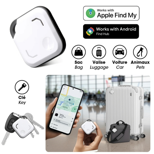 Système universel de localisation d’objets qui fonctionne avec le réseau Apple Find My ou le réseau Android Find Hub pour vous aider à localiser vos objets de valeur. Retrouvez vos objets perdus et ne perdez plus jamais rien. • Effets personnels : valises, clés, sacs • Animaux domestiques